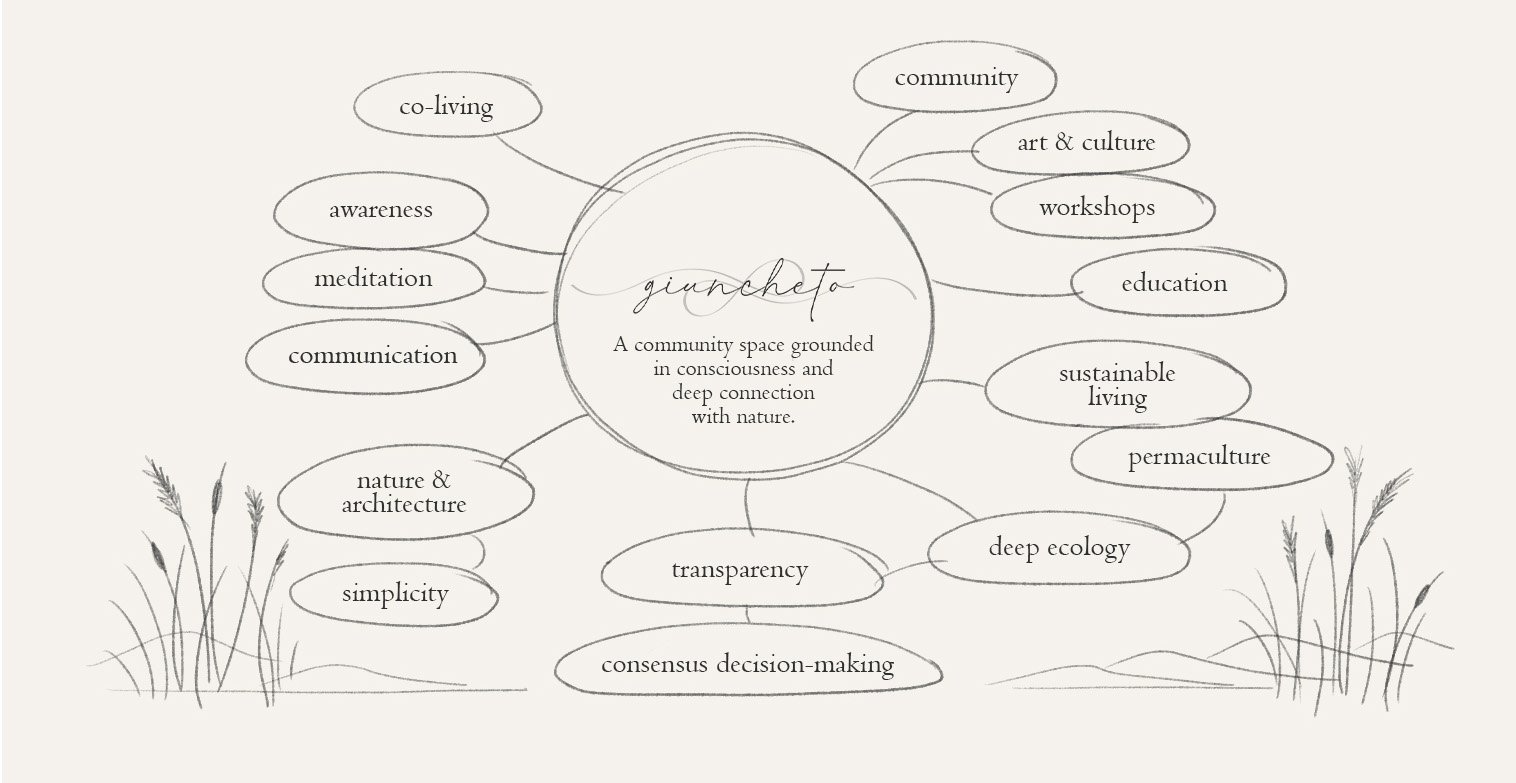 Giuncheto is a place of awareness and regeneration. A field where inner and outer life meet — where silence, land, and human presence grow together.